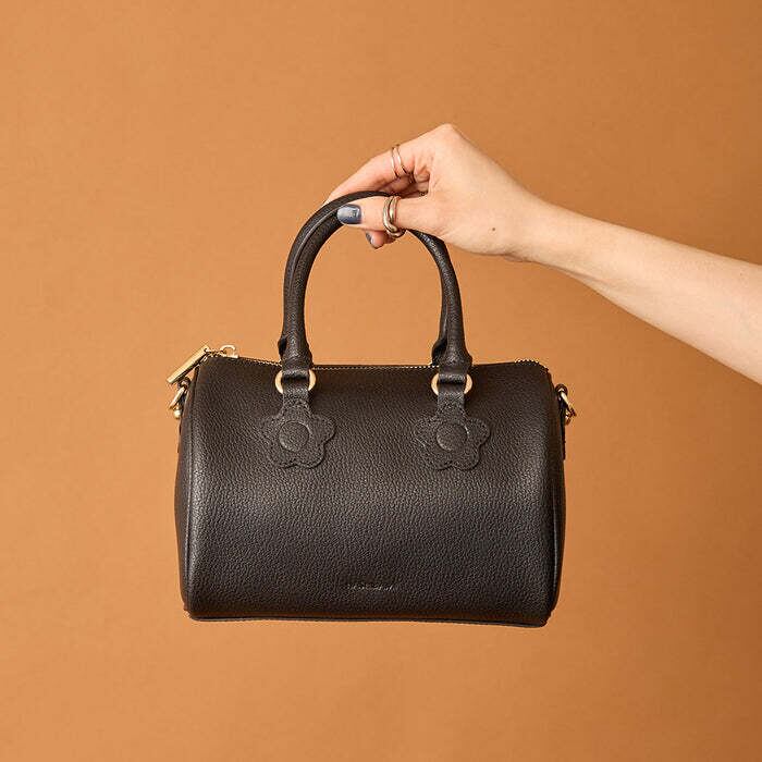 フラワーパッチがポイントのミニボストンバッグ