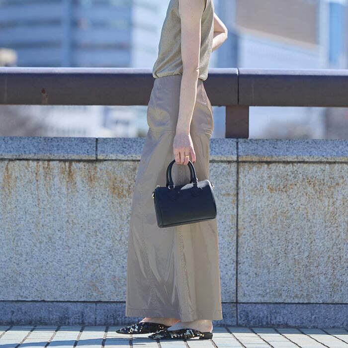 ・財布、ポーチ、ハンカチ、スマホなどいつもの荷物がしっかり入るサイズ感です